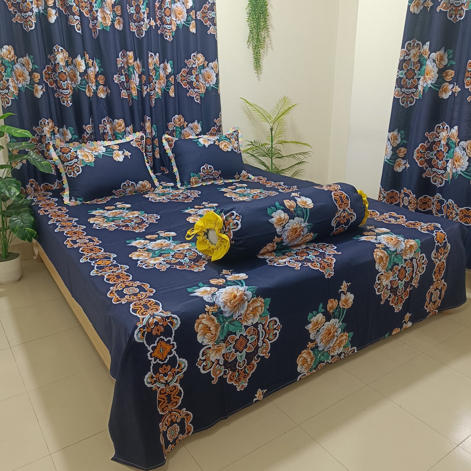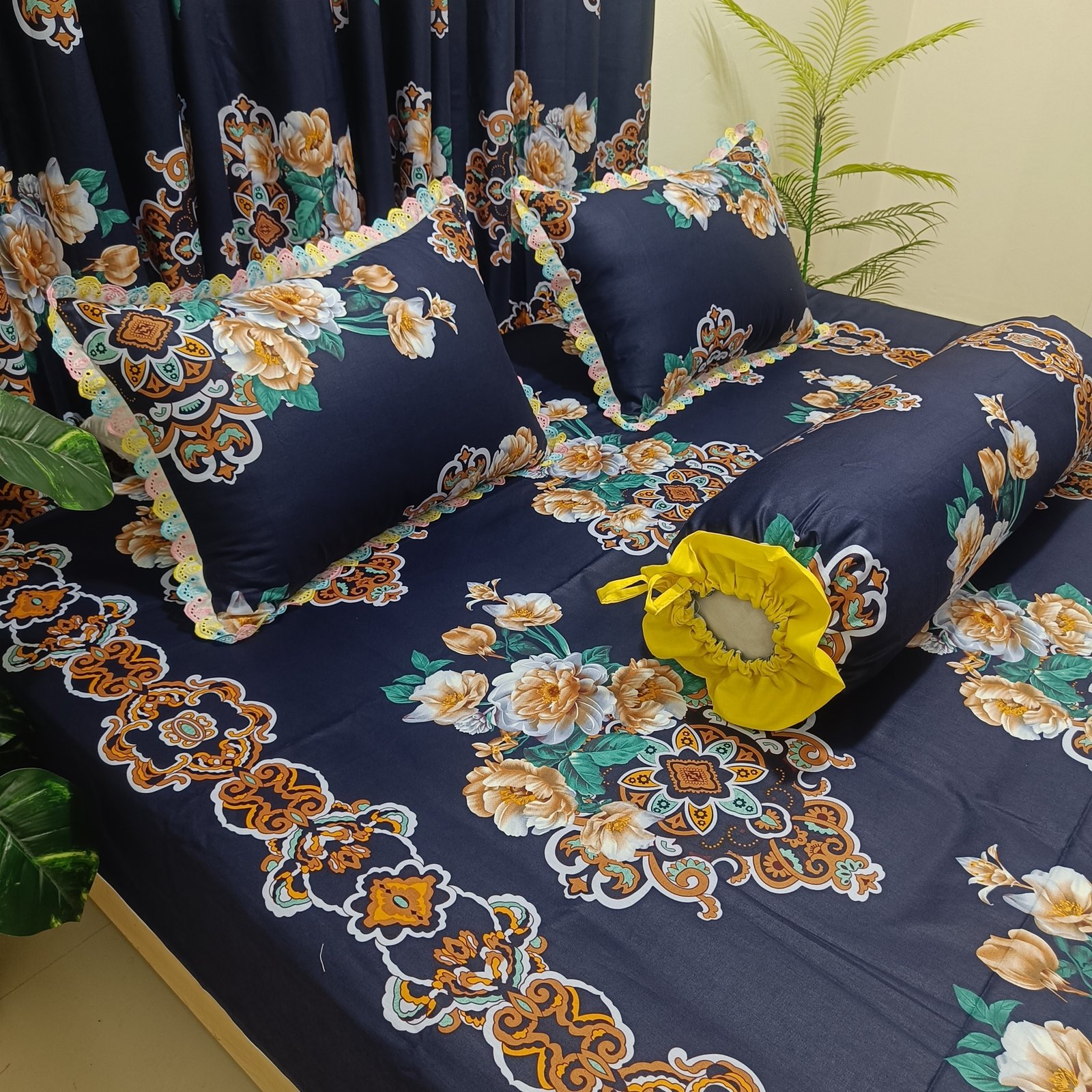 Imperial Navy Premium Cotton Bedsheet Set with Designd Pillows